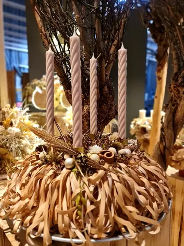 Stimmungsvolle Dekoration im Advent beim Floristenbedarfshandel Krapp